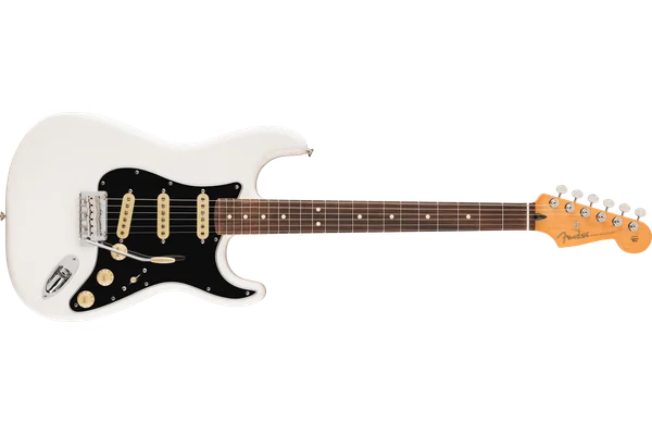 Les mecaniques standard Fender sont fiables et precises, avec un ratio 18:1 qui permet un accordage fin. Pour les guitaristes qui utilisent beaucoup le vibrato, un upgrade vers des mecaniques blocantes Fender Locking Tuners est le meilleur investissement possible (environ 60€). Le pickguard 3 plis blanc est classique et protège efficacement la finition. L'ensemble de l'electronique (potentiometres, selecteur, jack) est de bonne qualité et ne necessite pas de remplacement immediat, contrairement aux modeles d'entree de gamme.